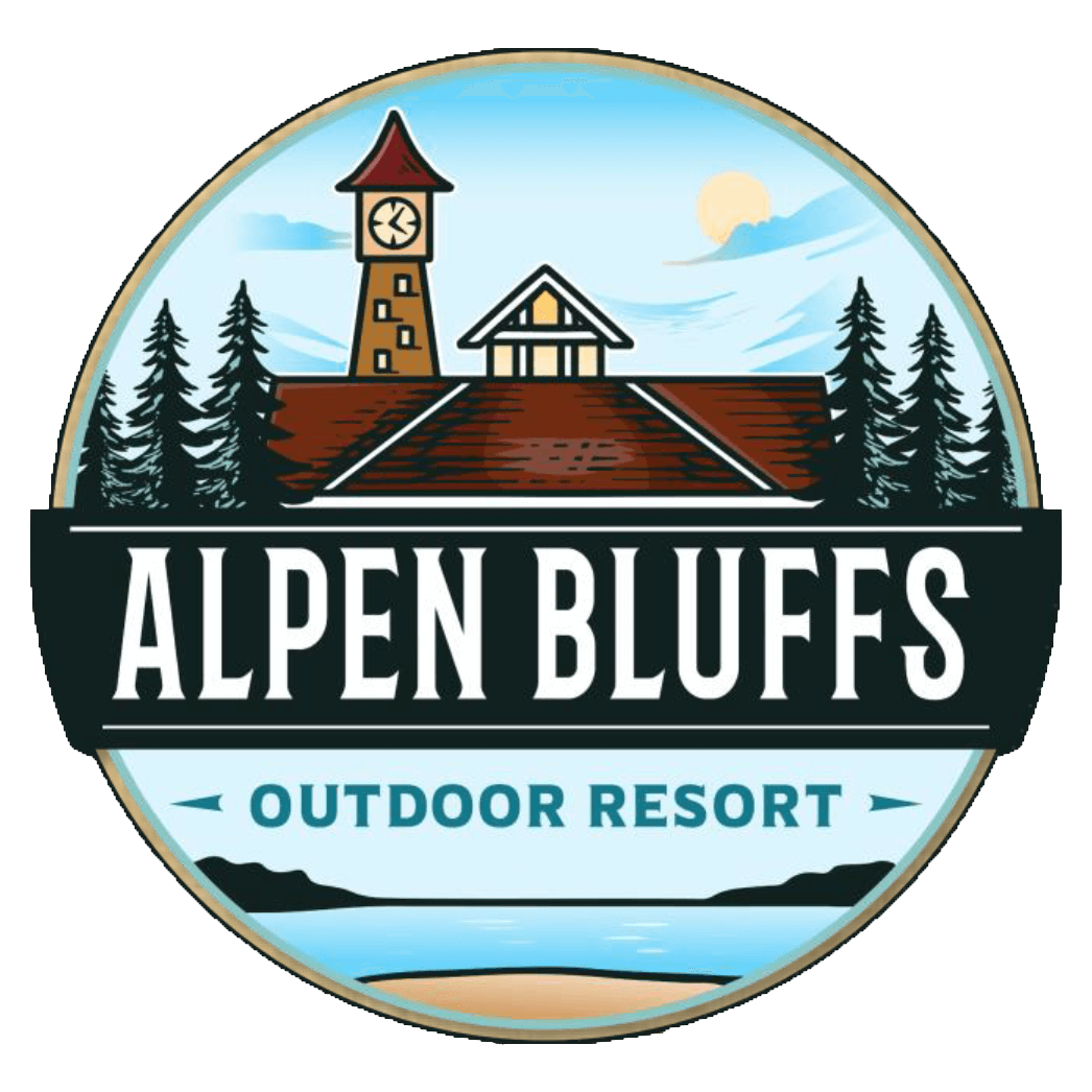 Alpen Bluffs provides fun for the entire family, including an aquatic waterpark, an outdoor pool with hot tub, an indoor golf tavern, mini-golf, kids play structure, kangaroo jumper, gaga ball, outdoor pickleball, camp store, dog park, and shower and laundry facilities.