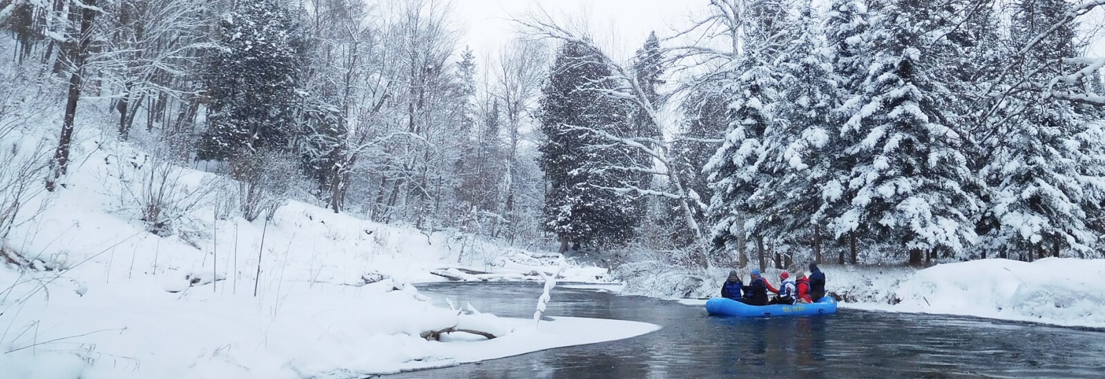 Before you shake your head and say “no way!” to winter rafting, let’s clear one thing up from the get-go: NO, YOU WILL NOT GET WET! This is a guided trip with experienced professionals calling the shots. If you’ve ever been spilled out of your kayak or canoe into the brisk waters of the Sturgeon River, we can understand your hesitation. But hear us out and keep reading because we would hate for you to go home without experiencing one of Gaylord, Michigan’s most extraordinary winter experiences.