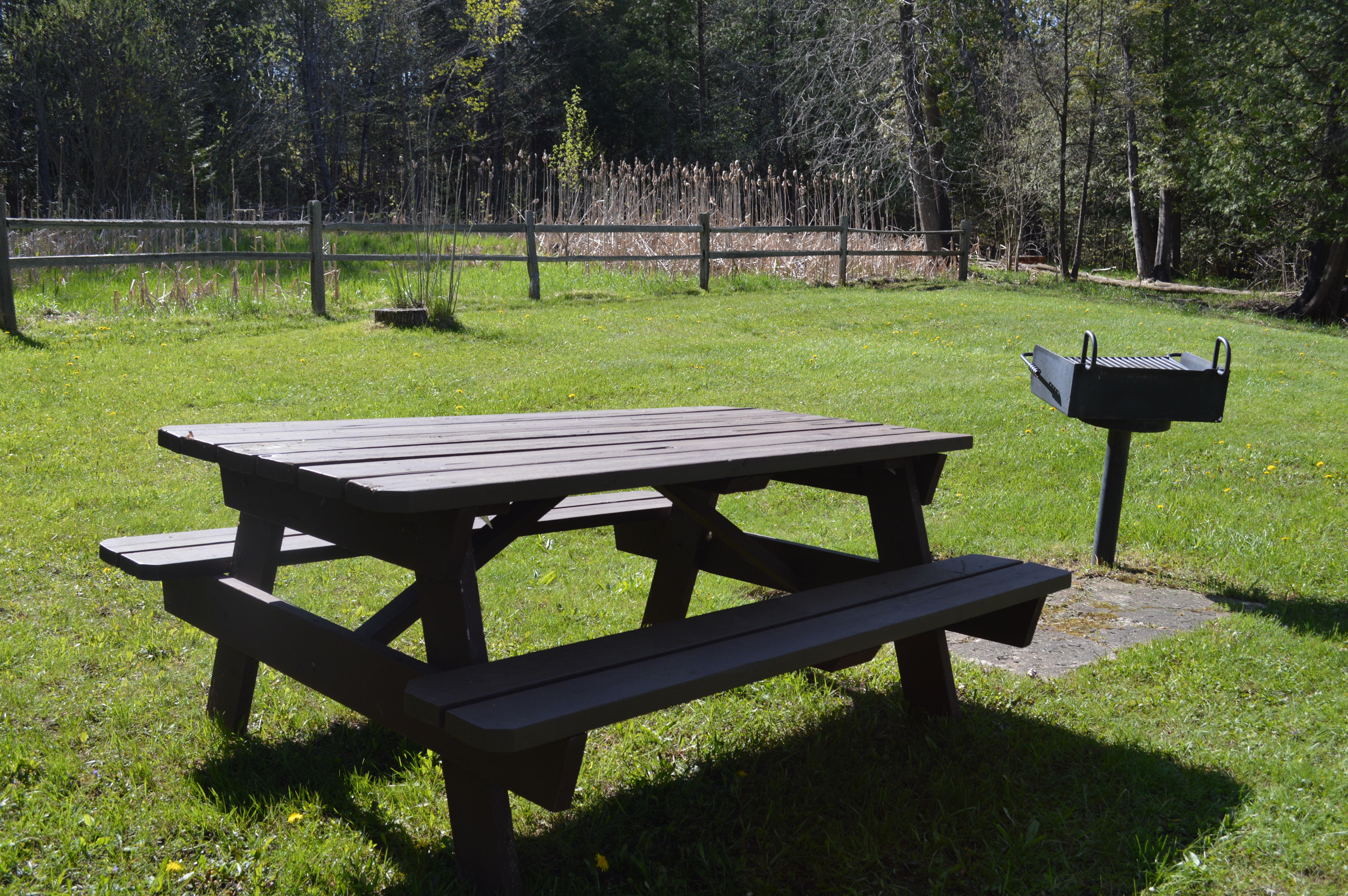 A picnic table and grill await a family for lunch. Photo by Chris Engle