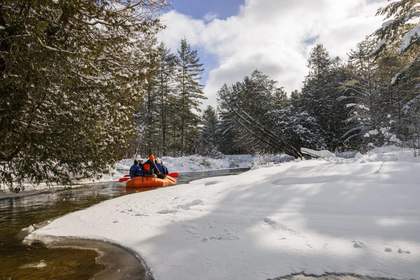 So many winter activities are dependent on the weather – Is there enough of a base for snowmobiling? Did a fresh foot of the fluffy stuff just change your cross country skiing plans? Whether we’re experiencing epic accumulation or a sudden January thaw, winter rafting is just as rewarding of an adventure. Also, perfect for families, couples, friends or co-workers, virtually every combination of travel companions will love partaking in a picturesque paddle together.