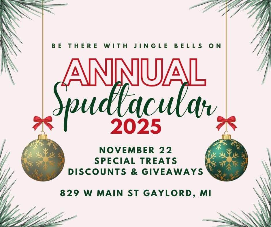 Be there with Jingle Bells on, at the Annual Spudtacular 2025, Sat,. Nov. 22nd, 2025. Please join us in celebrating our wonderful customers. We will be featuring a variety of treats, giveaways, and discounts. Thank you all for supporting us through another year. We love what we do and it would not be possible without you.