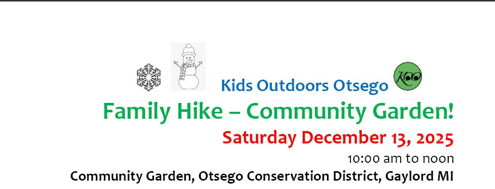Your family is invited to our next Kids Outdoors Family Hike and activity, a fun snowy morning with us and Conservation District Education Specialist Kelly at the Otsego Conservation District Community Garden. We look forward to teaming up for another December event together.