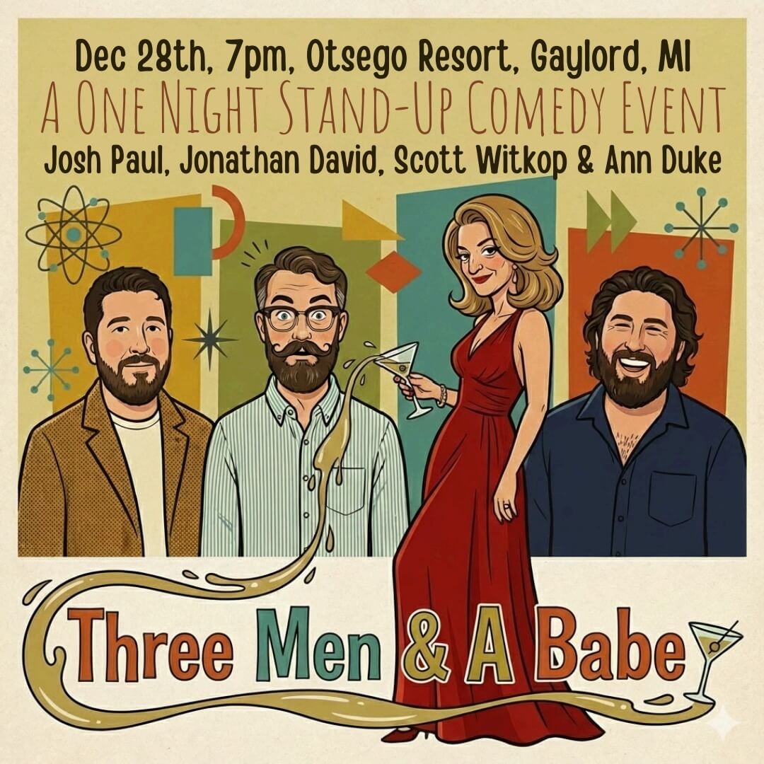 989-732-5181Come and enjoy a night of laughter at Otsego Resort’s Comedy Show “Three Men & a Babe”