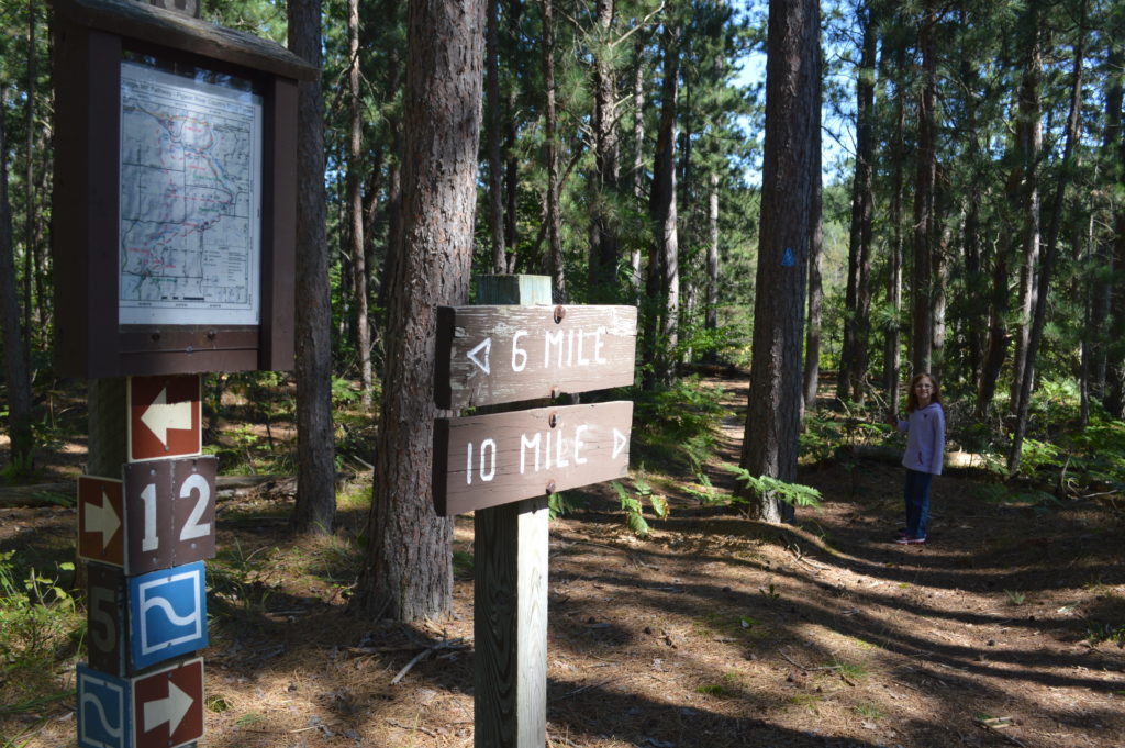 I had doubts last week whether Paige would make it all the way to our destination within the Pigeon River Country State Forest without me carrying her at some point. I also wondered if she should be wearing her new shoes for kindergarten, but they were the only ones that laced up tight and four miles of hiking would break them in nicely.