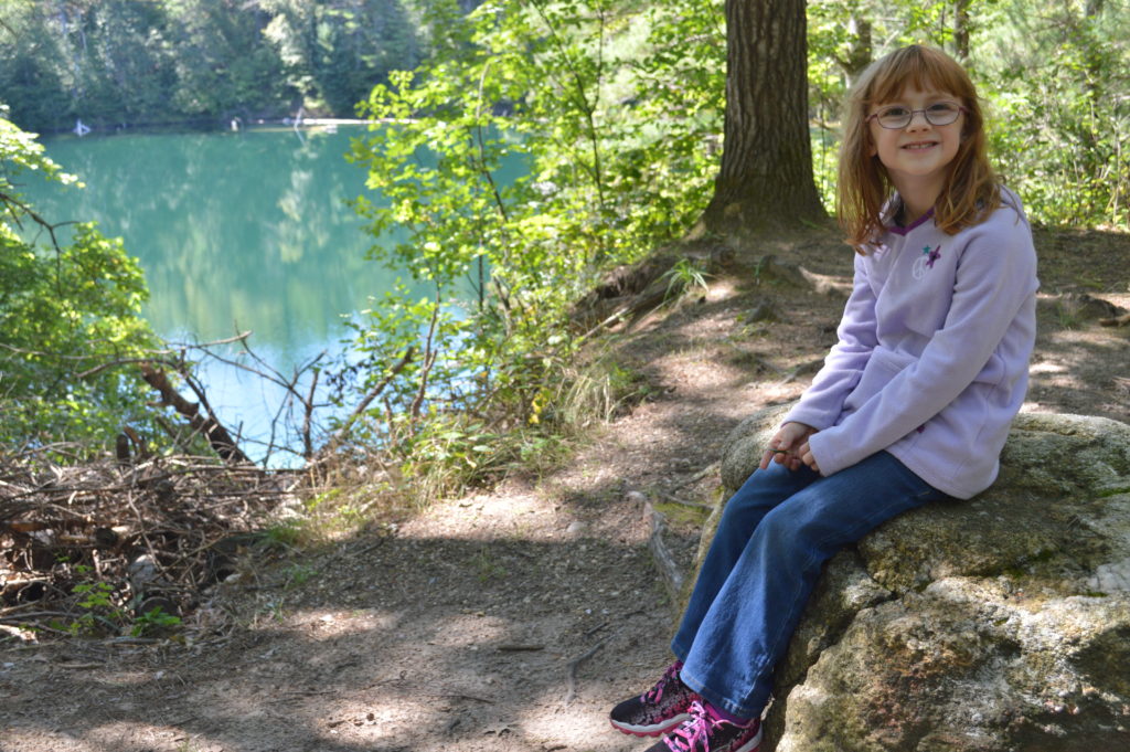 She started the hike with vigor, running the first few hundred feet of trail along the winding river. I called to her to slow down and ration her energy, not really knowing how she’d do on such a long hike for a little kid. She let me lead and set the pace for the first mile.