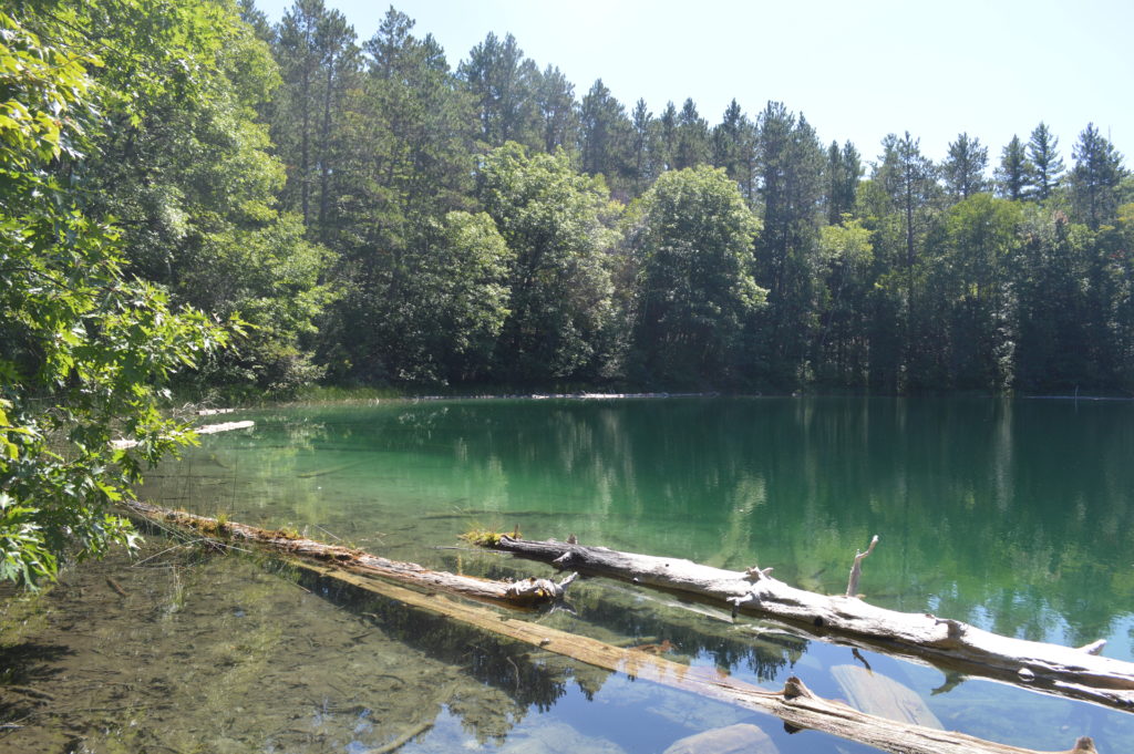 This is what makes Section Four special. The sinkhole lake, its water laden with dissolved limestone, shines a brilliant greenish blue under the noontime sun. It’s like a piece of the ocean was plucked from the Caribbean and dropped in Northern Michigan except, unlike tropical ocean waters, Section Four is bitterly cold year round – but you’re still welcome to swim if you’re determined or crazy.