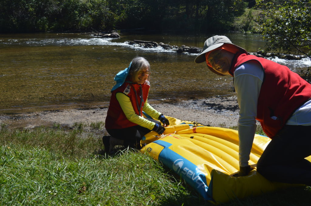Pam and William Toth, of Florida and Waters, Mich., pack up their inflatable kayak after floating a few miles of the river. “It’s a beautiful trip,” William said. Photo by Chris Engle
