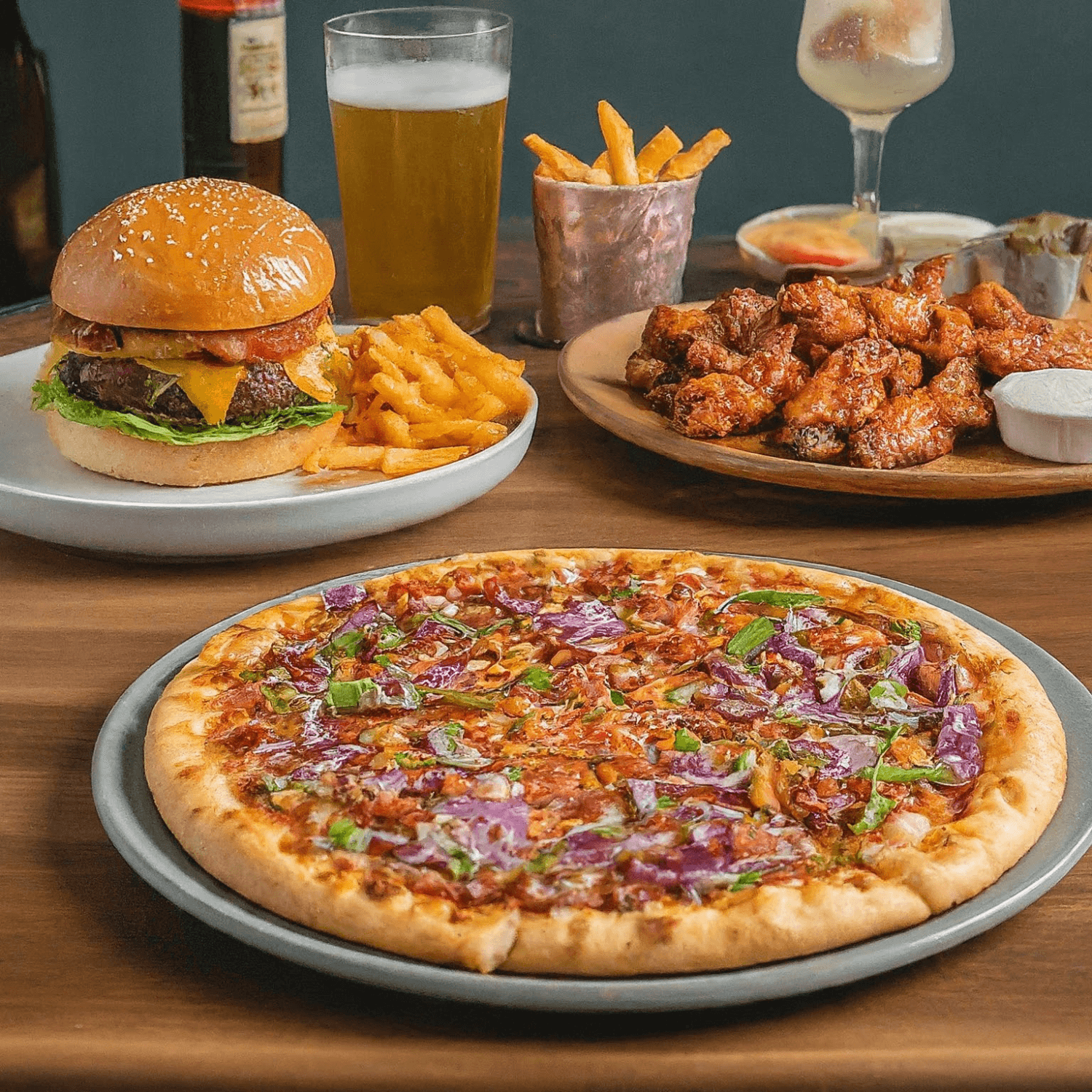 Enjoy a variety of delicious options, from juicy burgers and savory pizza to fresh wraps and tasty appetizers, all while having fun bowling or listening to live music.